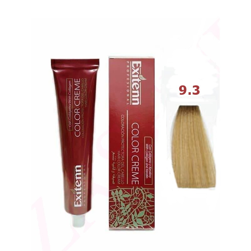 9.3 RUBIO CLARISIMO DORADO S/A es un tinte de coloración diseñado para lograr un resultado homogéneo y luminoso, ideal para salón o aplicación en casa con acabado profesional.