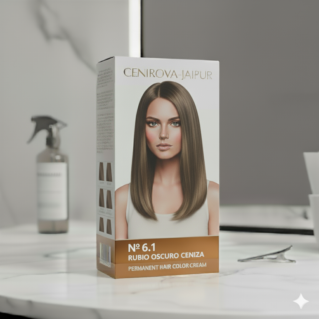 Tinte de coloración 6,1 RUBIO OSCURO CENIZA CENIROVA para un acabado profesional: color uniforme, brillo y cobertura fiable.
