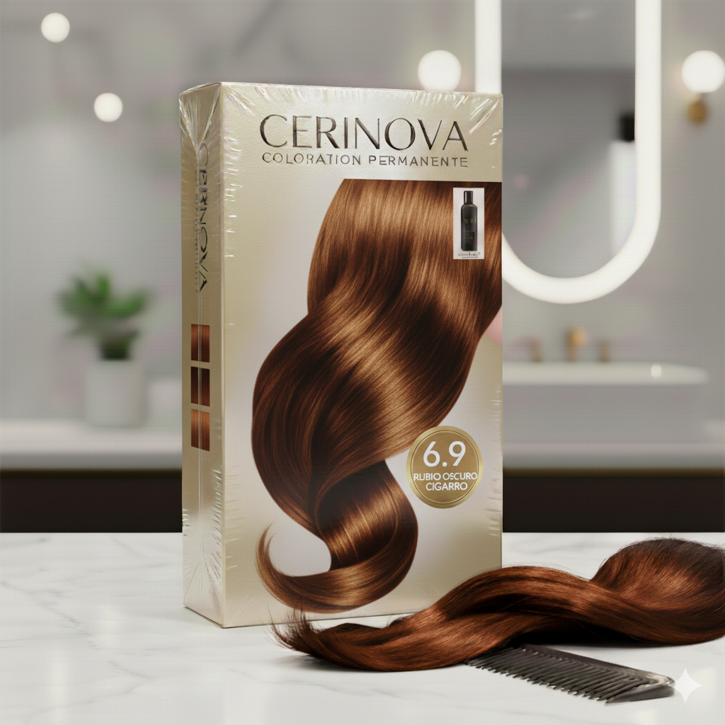Tinte de coloración rubio oscuro 6.9 para un acabado profesional: color uniforme, brillo y cobertura fiable.
