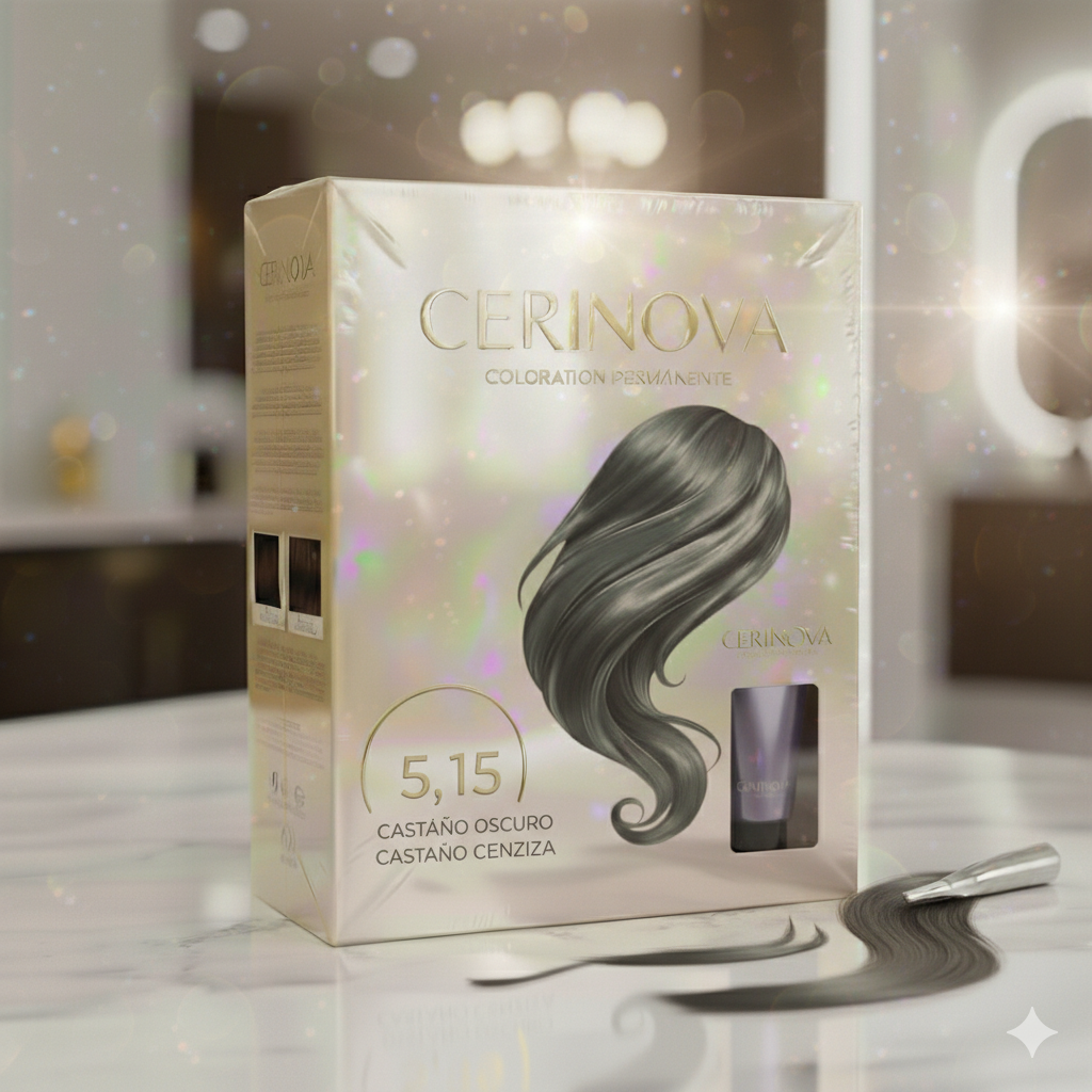 Tinte de coloración 5,15 CASTAÑO CLARO CENIZA para un acabado profesional: color uniforme, brillo y cobertura fiable.